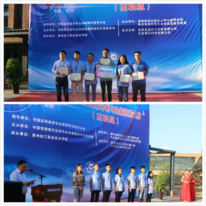 2017年9月23日,“贵州省企业经营分析与决策技能大赛(高职组)”在贵州轻工职业技术学院举行,本次大赛由中国高等教育学会高等财经教育分会指导,中国管理现代化研究会决策模拟专业委员会主办,贵州轻工职业技术学院承办,高等教育出版社上海出版事业部和贵州省高职高专经管时间教学联盟共同协办,北京金益博文科技有限公司和北京朔日科技有限公司提供技术支持,共有十二所高职院校12支参赛队伍进入了贵州省现场决赛。本届比赛得到了贵州省教育厅的大力支持。
