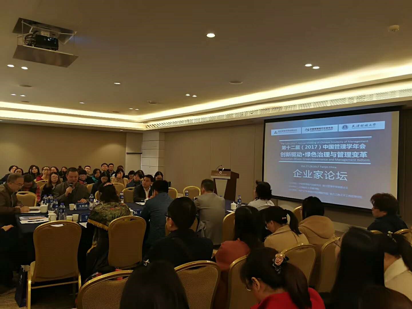 2017年10月29日上午,第十二届中国管理学年会企业家论坛成功召开。松井新财董事长兼CEO凌云剑、爱波瑞集团总裁王洪艳、杭州万事利丝绸文化股份有限公司副总经理王群峰、光大中船新能源产业投资基金总经理谢文生、大连大米科技集团董事长杨健、天津梦得集团有限公司董事长于静等企业家代表出席此次论坛,并与众多代表就供给侧改革与发展模式变革、绿色治理与产业转型、智能制造与企业管理机制创新等议题展开广泛深入的交流。浙江工商大学管理学部主任郝云宏教授主持此次论坛。