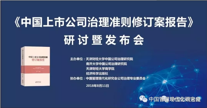 该报告是中国公司治理研究院继十八年前推出《中国公司治理原则》,并依据积累近二十年的研究成果与实践经验提出的公司治理准则升级版。来自政府部门、理论学术界与实务界的专家学者对这份系统的公司治理准则升级版进行深入研讨,认为治理准则的系统提升,有利于缓解治理规则建设的严重滞后产生的种种公司治理乱象,从事件推动转向准则指引,提升中国上市公司治理实践的水平。会议由天津财经大学中国公司治理研究院、南开大学中国公司治理研究院、天津财经大学商学院、中国财经出版传媒集团经济科学出版社主办,中国管理现代化研究会公司治理专业委员会协办。
