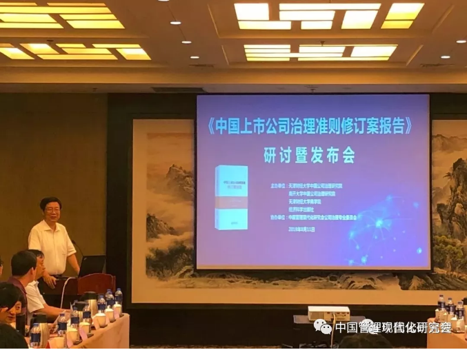2018年8月11日《中国上市公司治理准则修订案报告》研讨暨发布会在天津市顺利召开,中国公司治理研究院院长李维安教授代表课题组发布了即期出版的《中国上市公司治理准则修订案报告》。
