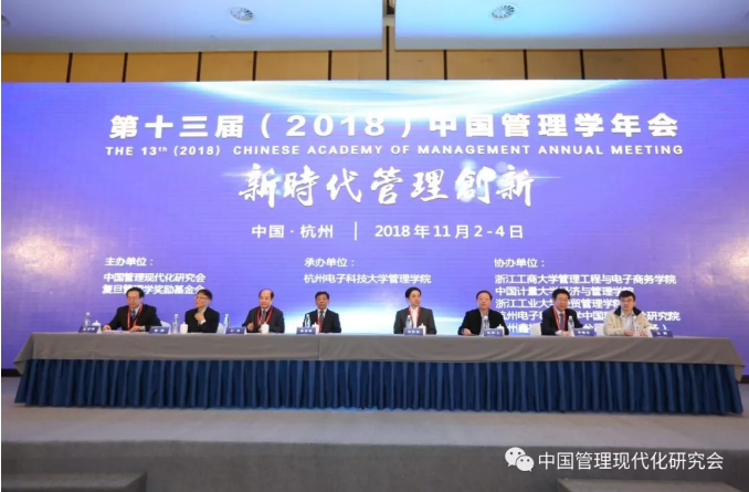 2018年11月3-4日,第十三届(2018)中国管理学年会在杭州隆重举行。本次年会由中国管理现代化研究会与复旦管理学奖励基金会联合主办,杭州电子科技大学管理学院承办,浙江工商大学管理工程与电子商务学院、中国计量大学经济与管理学院、浙江工业大学经贸管理学院、杭州电子科技大学中国科教评价研究院等协办。