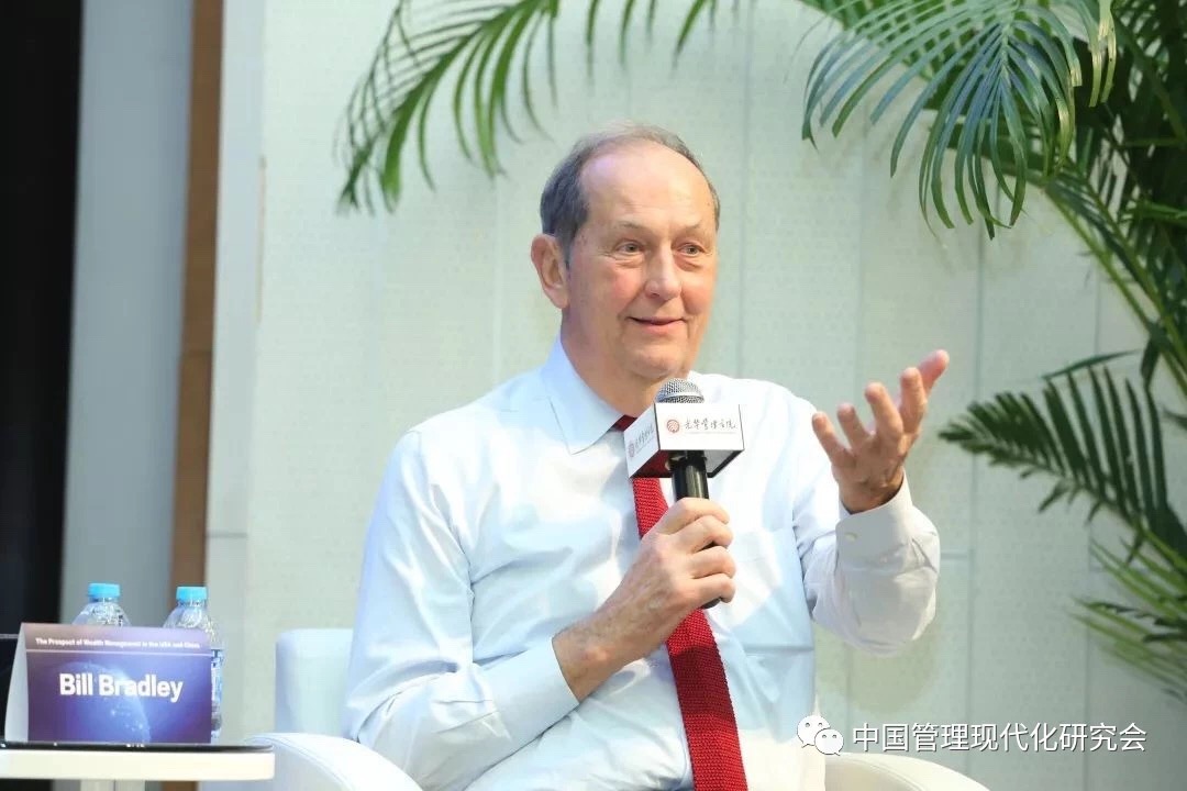 布莱德利先生从自己的篮球岁月谈起。他在担任参议员之前曾经夺得奥运会金牌,他为纽约尼克斯队打球获得了两届的NBA冠军,并入选NBA的名人堂。他表示,一生坚信的信条就是要努力,有团队精神,并且要有想象力。想象力加上努力可以将梦想变成现实。谈起自己的政治生涯,他认为,一个善于思考的人,应该问自己三个问题:发生了什么,为什么发生,和哪些没有发生。在看待中美关系时,也应该问这三个问题。除了分析已经发生的事情,同样要关注即将发生的事情。布莱德利先生表示,不论是体育还是公司管理,都有共通之处,即不仅考虑眼前利益,更要关注长远发展。企业的发展,得益于人才的培养、信任的建立、团队的合作、和长久的坚持。